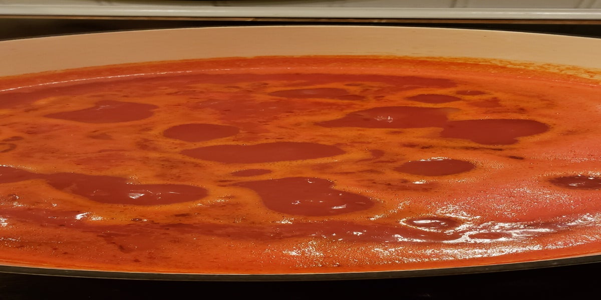 Juice and pulp from about 60 roma tomatoes, or 8 cups tomato passata - fresh or store-bought (see our post on homemade passata)