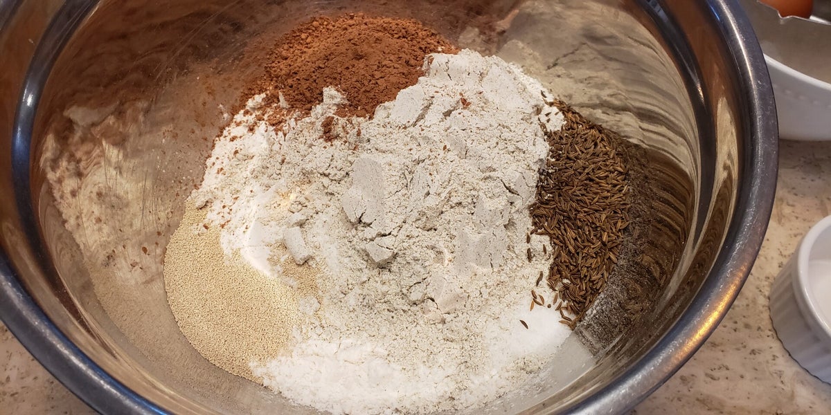 This recipe is being posted at the request of my sons, who asked me to bake homemade rye bread. This one is dark and dense, yet remarkably soft with a good crumb. The molasses and cocoa are what add the depth of flavour you'd expect from dark rye. While caraway seeds have a warm, pungent, earthy taste which elevates this bread to another level. Serve it up as part of a delicious sandwich or, on its own, as buttered toast.