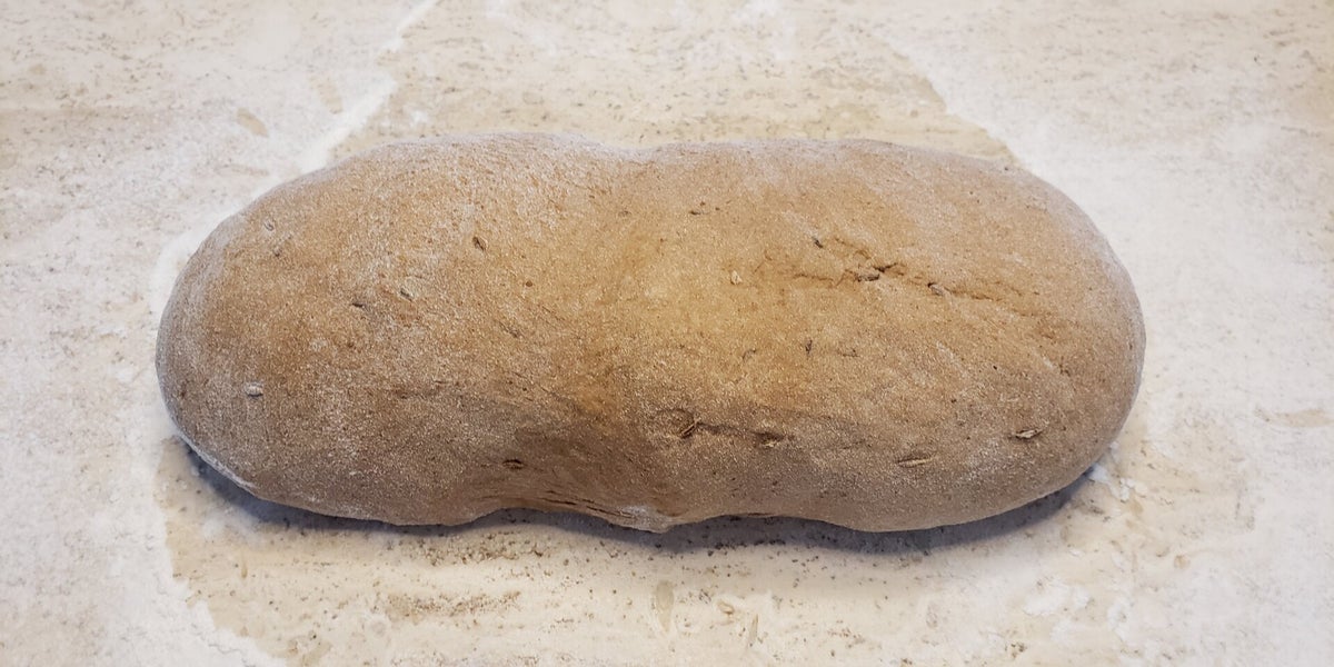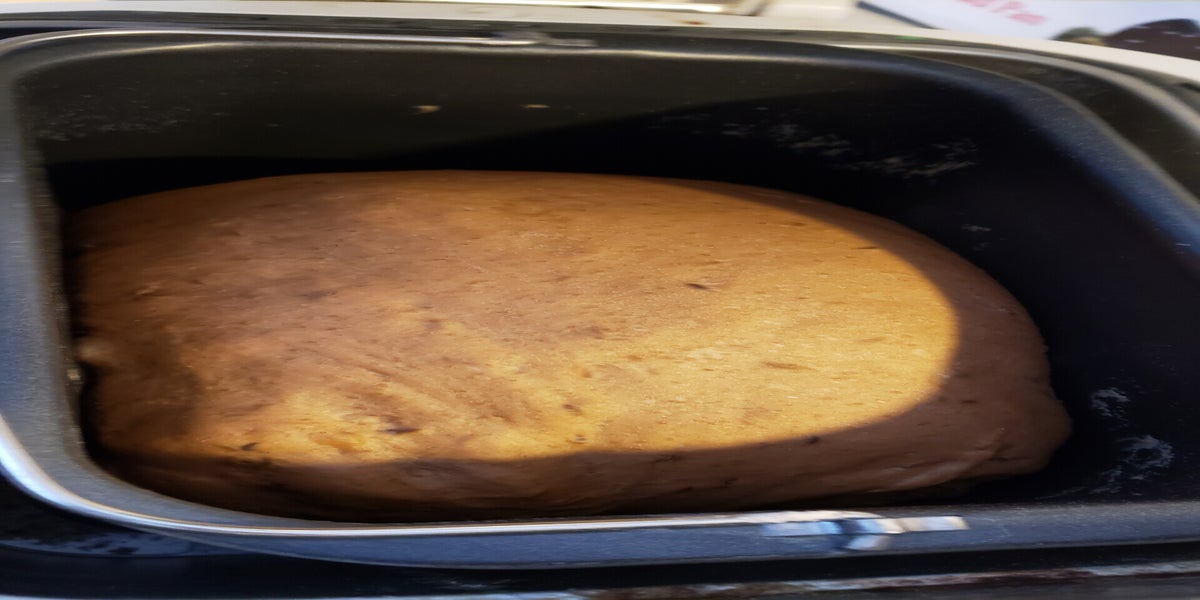 4. When dough cycle is complete, remove dough to a lightly floured surface and punch it down, then roll into an oblong shape that will fit in a loaf pan